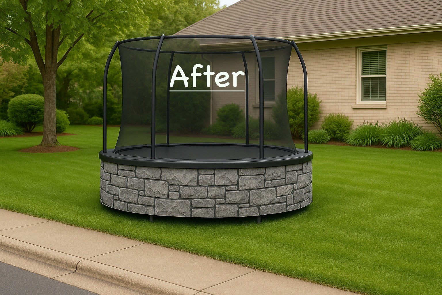 The Trampo Skirt - the worlds first and only decorative trampoline skirt that is a specially designed material that attaches around the base of your trampoline, combining safety, style, and convenience. Measuring 605 inches long and 34 inches tall, making it compatible with most trampolines 16 feet in diameter or smaller.