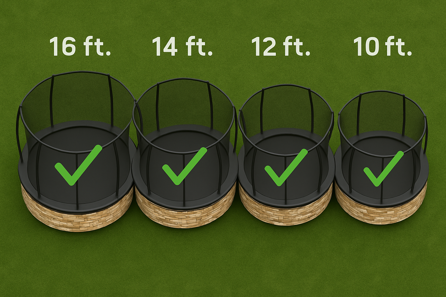 Measuring 605 inches long and 34 inches tall, making it compatible with most trampolines 16 feet in diameter or smaller.